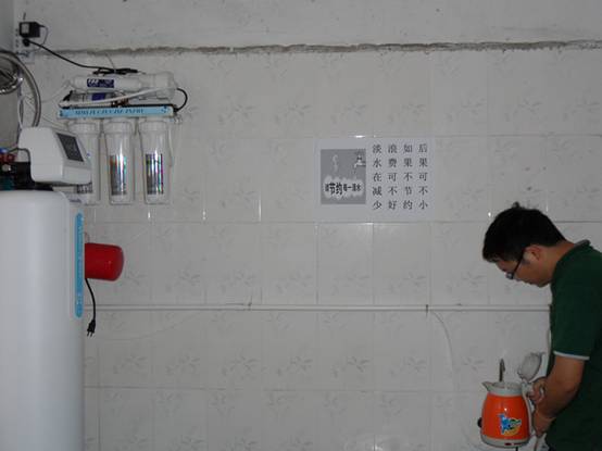 徐州分公司投入万元在职工宿舍一楼自来水管路中安装了净水装置。净水装置通过对自来水五重过滤后,将水中的氯气、重金属、化合物等有害物质清除,避免了水质对人体的伤害,饮用起来如“泉水”般怡人。