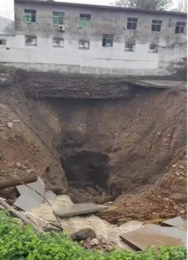 7月17日以来,河南遭受极端强降雨天气,分公司驻地登封市白坪乡遭遇历史有记录以来降水峰值。白坪乡前期存在大量煤矿,地下存在采空区,连续强降雨天气造成白坪小区北侧道路塌陷,目测塌陷方量1600m3,造成河道改道,洪水沿塌陷区倒灌入地下。7月21日上午10时许白坪分公司接到白坪乡政府险情通知,立即组织人员及设备赶赴现场进行抢险救援工作,调派挖机两台、汽车两辆,其中一台挖机去塌陷区进行险情处理,另一辆挖机配合汽车在矿山装料运输至塌陷区。目前位于塌陷区处理险情的挖掘机24小时不间断作业,力争以最快速度排除险情,不计代价配合当地政府做好防汛救灾工作,做到央企在关键时刻的责任担当。