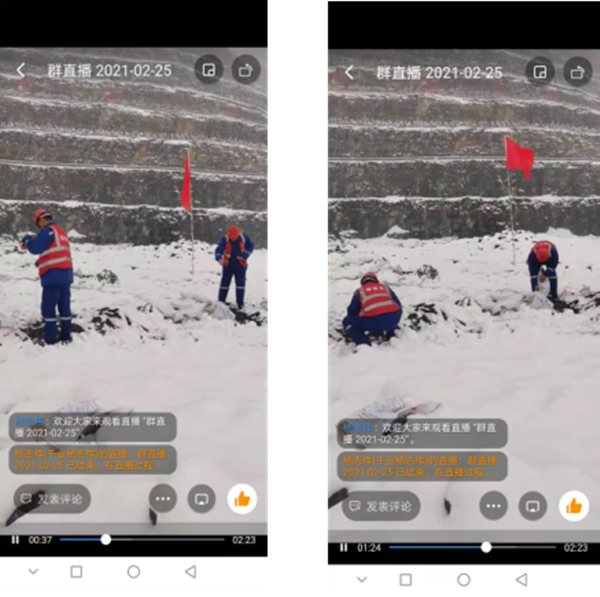 25日早,雪已经停了,并且气温徘徊在零度之上,虽然冷,但道路没有结冰,炸药运输车也安全准时的送达到了现场。为了顺利开展爆破作业,马村分公司的同志们在刘党经理的带领下,吃过早饭后就立即组织进入矿山,开展工作。爆破工作严格按照规定及河南省公安厅的要求下进行,全部流程都进行钉钉直播,留存录像。