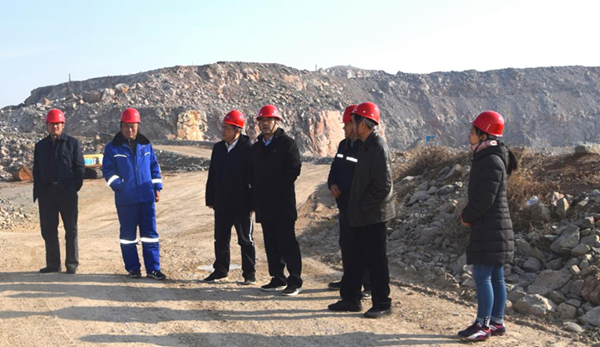 山东申丰水泥集团党委书记陈军、副总经理潘洪强等业主方领导、兖州中材枣庄申丰工程处经理康斌、兖州中材淮海分公司经理李劲松等陪同郭总一行视察矿山施工现场。期间,郭总指出,矿山生产智能化是实现习总书记绿色、环保发展理念的重要方向,应积极研究和推进。