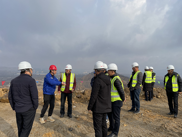 应急局领导及专家组对矿山施工现场的运矿道路、排水沟、安全车档、基建平台等进行现场查看验收。