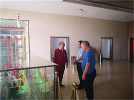 在矿山临建生活区检查过程中,郭总与业主山西国金电力有限公司董事长、总经理颉进行友好的畅谈,随后郭总董事长邀请来到山西国金电力有限公司总部大楼,兴致勃勃的参观了正在使用世界首350MW超临界循环发电机组模型