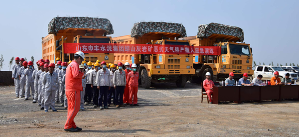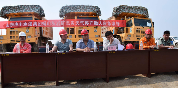 枣庄申丰水泥矿山开展恶劣天气停产撤人应急演练