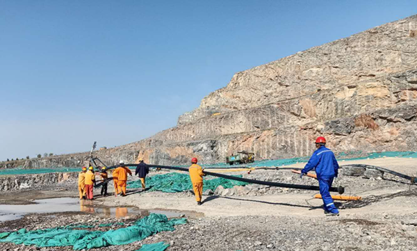 在严峻的环保形势下,为了更好的控制灰尘对大气环境的污染,枣庄申丰水泥矿山在各个采矿平台铺设了喷射系统,对正在进行挖装的作业区都配置了降尘水炮。因每组水炮都有一定的喷射范围,现场管理人员根据现场矿石开采及装运情况,经常需要对喷射装置及管路进行挪移。