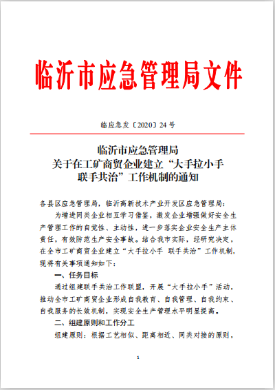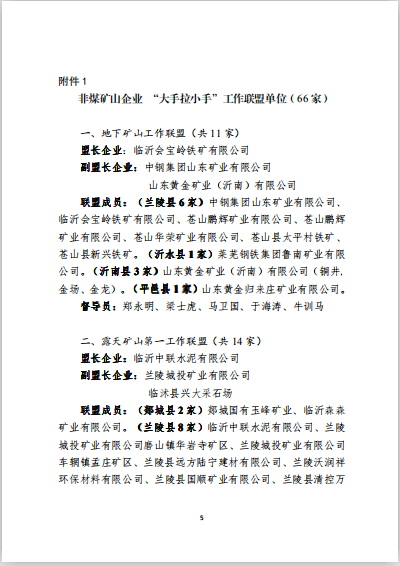 进同类企业相互借鉴学习,激发企业增强做好安全生产管理工作的自觉性、主动性,临沂市应急管理局在全市工矿商贸企业建立了“大手拉小手,联手共治”的工作机制,自兖州中材建设有限公司承担临沂中联石灰石矿山开采工作以来, 现场形象取得巨大提升,成为临沂市露天矿山开采行业的典范,临沂中联水泥有限公司被推举为露天矿山第一工作联盟盟长。