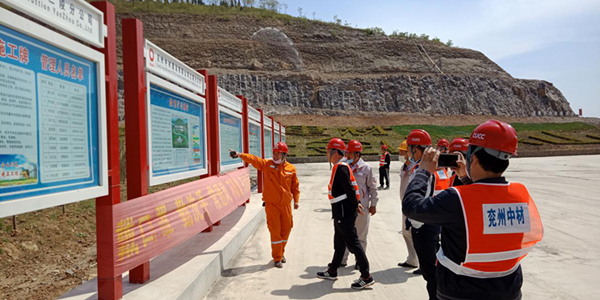 交流结束后,各企业参会人员驱车到矿山生产现场,进行现场观摩。实地观看矿山生产现场的安全文化长廊、安全警示牌、预裂边坡、道路挡墙等安全设施和洗车槽、喷雾、喷淋等抑尘环保系统。各位代表对矿山在安全、环保方面的大手笔投入纷纷竖起大拇指,对生产现场的安全管理工作表示赞叹。