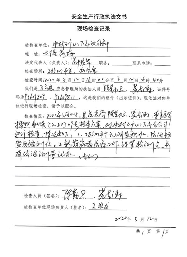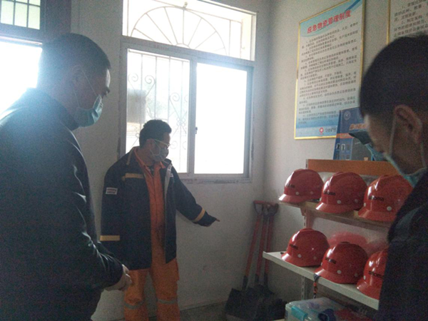 2020312午,根据万年县疫期防控需要,万年县应急管理局领导中材矿山万年分公司施工现场及办公室进行检查主要检查了分公司疫情防控相关措施及汛期防护设施物资。
