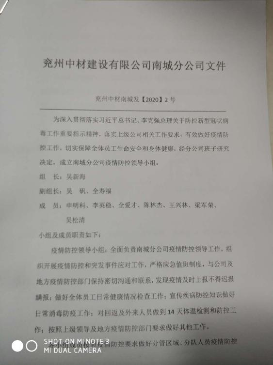 分公司以深入贯彻落实集团公司文件精神为目标,密切配合当地政府工作,成立以吴新海同志为首的疫情防控领导小组,细化人员责任,明确组织分工,从思想高度做好打赢防疫攻坚战的准备。