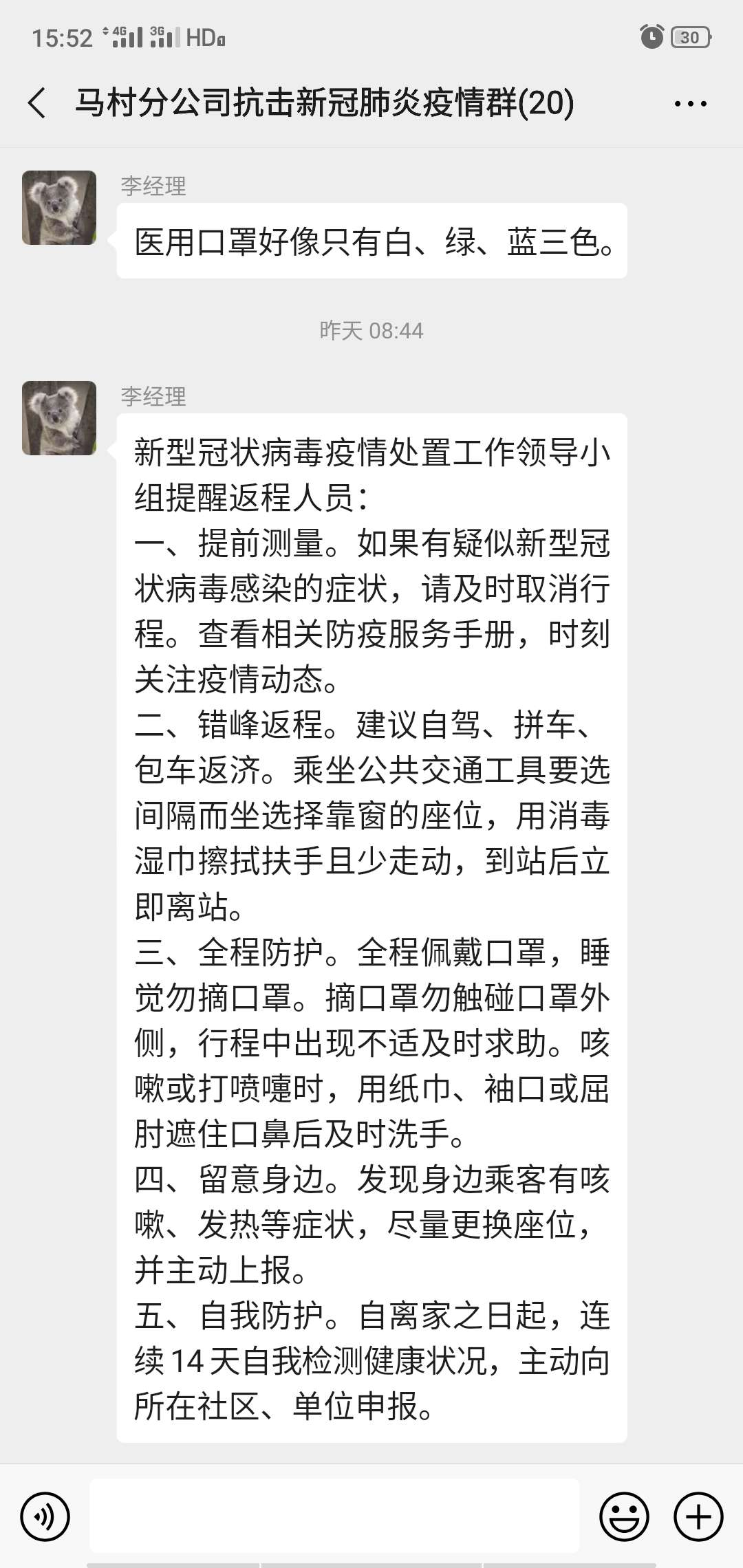 公司员工每天测量体温,汇报身体状况;对于外地返岗人员,按照相关规定进行相应的隔离,隔离期间每天3次汇报体温,并接受地方政府及先关人员的监督,确保万无一失。