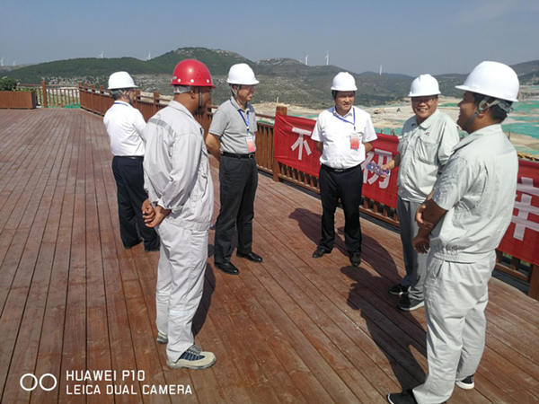 苏逵一行首先参观了矿山,在260观景平台与业主领导进行了工作交流,平阴山水总经理助理江帅向苏逵介绍了平阴山水基本情况,并对水泥厂后续规划做了详细介绍。分公司经理刘占中向苏总详细介绍了矿山工作开展情况,