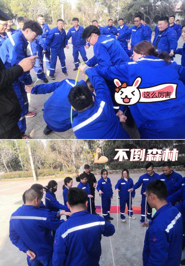 • 我们又开展了沙场点兵、指压板、一圈到底、不倒森林等趣味游戏。这些趣味性较强的手脚并用游戏,极其考验参与者的协调能力,需要手脚灵活并用。通过这些游戏大家充分地认识到工作亦是如此,每个人在团队中不仅是个人,还是链条中一环,环环相扣,团队成员之间只有随时保持协调合作,才能高效的处理各种类型的工作任务。