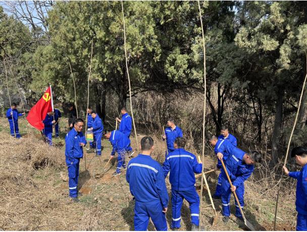 临近3.12植树节,为响应中材矿山“党旗红,矿山绿”的主题植树活动,本次团建活动特意加入了植树环节。大家有的铲土挖坑、有的培土植树,有的浇水灌溉,个个争先恐后,干得热火朝天。