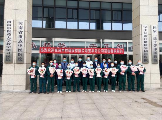 最后,宝丰分公司领导与中医院领导、医护人员合影留念,共同承载着医企的执着、勇气和担当,携手抗击疫情,为人民健康保驾护航!