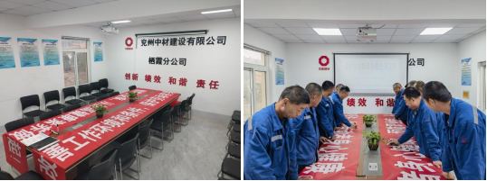 分公司员工于现场办公室进行启动仪式签字活动。大家广泛发动,扩大宣传范围,大力宣传活动主题和重点活动内容,宣传职业病防治和职业健康知识及有效举措。