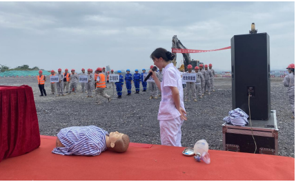 演练结束后,大家汇聚在现场安全平台,由玉山县蓝天救援队队长许庆华为大家讲解现场紧急救援要点、玉山县人民医院护士长为我们讲解并现场演示心肺复苏及外伤现场应急处置方法。通过本次联合演练及专业知识讲解学习,我们学习到在现场救援时,首先要进行环境评估,观察场地是否存在二次危险,观察好逃生路线,不要慌张,不要轻易搬动患者及正确对骨折患者如何转移的要点。