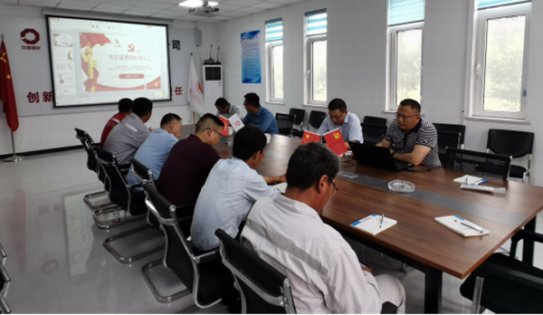 2021年6月16日,党的百岁生日到来之际,兖州中材纪委书记鲁臣同志莅临曲阜分公司,组织召开了以“把忠诚镌刻在岗位上”为主题的庆祝建党100周年专题党课。济宁泰安党支部党员及入党积极分子等参加此次学习。