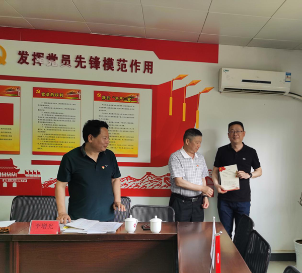 会议宣布后,王中秋同志代表公司党委向李力同志表示祝贺,并向李力同志颁发了党员政治生日贺卡。李力同志向大会表达了自身的想法与决心,不忘初心跟党走,在今后的学习工作中,坚定目标、严格要求自身,努力改正现有不足,积极向优秀共产党员学习树立先锋模范作用。