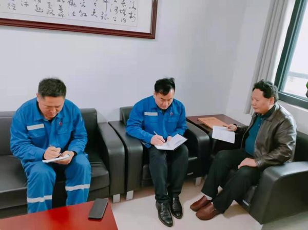2021年4月26日,公司党委书记、总经理柯升,副书记何芳训,党群部部长李增光,来到兰陵分公司上党史教育课和调研党员发展工作。