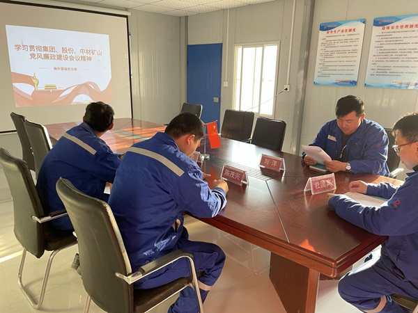 2021年4月9日,焦作晋城党支部召开全体党员大会,集中学习贯彻落实2021年中国建材集团、中国建材股份、中材矿山党风廉政建设会议材料,会议由支部书记杜国宾支持,支部全体党员参加。