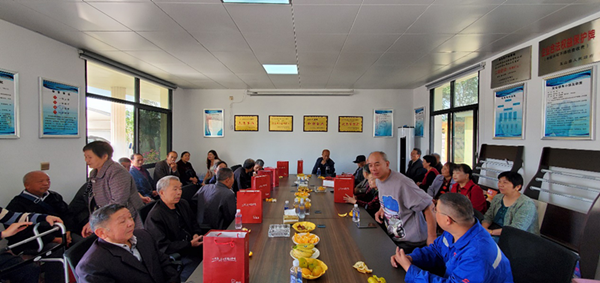 公司工会主席刘衍胜、万年分公司经理郑发军和江西郴州党支部书记姜嵩(玉山项目部经理)带领支部多名党员及两个项目的全体员工热情接待了“回家”的退休职工及其家属共26人,他们大多已年逾古稀,两鬓斑白,有的甚至步履蹒跚,但重回曾经工作过的环境,勾起无数回忆,重新实现相聚,大家笑容满面、幸福满满。