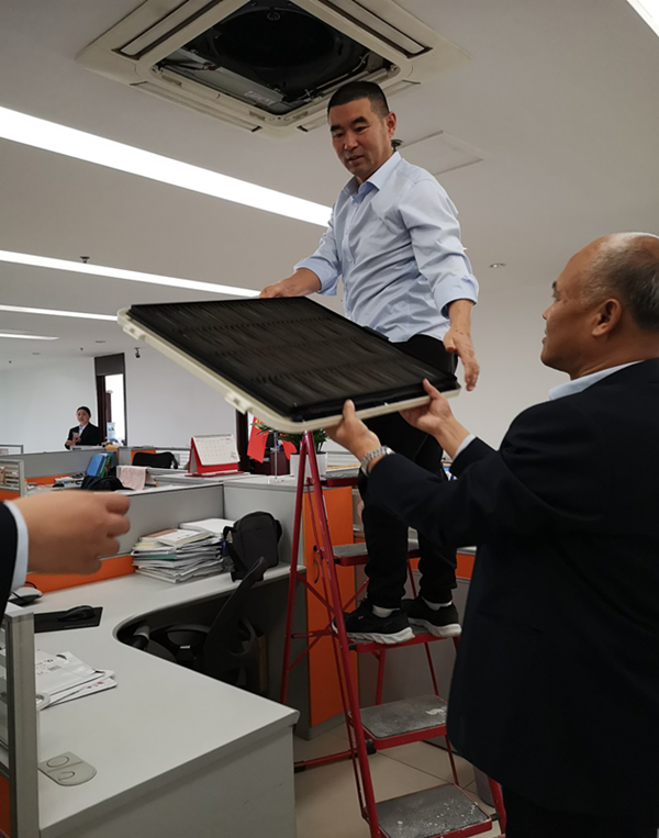 为扎实开展“不忘初心 牢记使命”主题教育,充分发挥党先锋模范作用,11月11日,济南支部开展 “不忘初心 牢记使命”主题教育党员志愿服务活动。支部书记高金轩同志带领党员全面清洗办公区空调过滤网。经过一个夏天的使用,空调进风口格栅和过滤网已经布满灰尘,同志们不怕脏不怕累,挨个拆卸、清洗、擦拭、晾晒,将每个过滤网清洗的洁净如新。