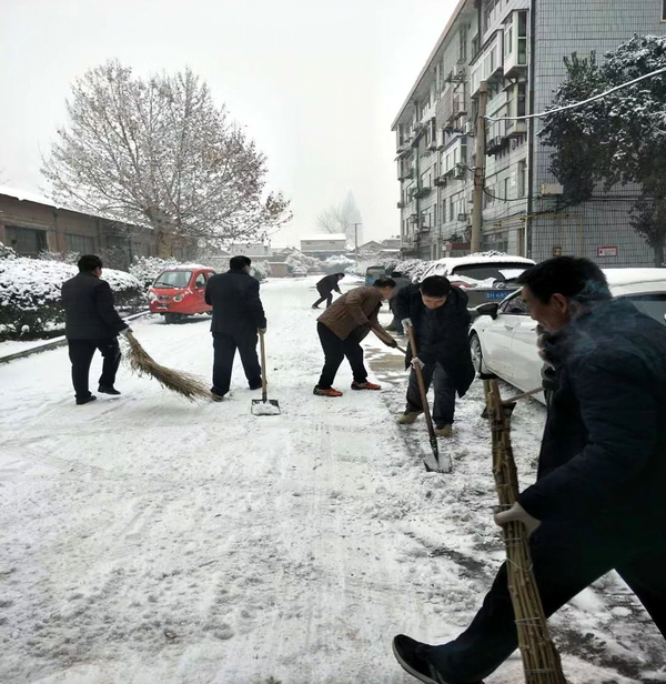 然而大雪的降临也给大家的出行带来诸多不便,公司基地大门口、办公楼前、生活区的道路都被皑皑白雪覆盖,尤其是给老人和孩子的出行带来的不便尤甚。上午上班时间还不到,兖州机关党支部书记李增光第一个拿起了扫帚,来到办公楼前扫起了雪,行动就是无声的号召,公司机关的干部职工都不约而同的拿起扫帚铁锨,加入到扫雪的大军。铁锨和地面的碰击声、扫帚清扫雪花的刷刷声,不一会儿办公楼前的积雪已踪影全无,然而大家并没有停住脚步,继续向大院深处走去,球场、院门、居民楼前......所到之处,雪没了,路干净了,路过的人们纷纷投来赞许的目光,挂满枝头的冰凌随风婆娑起舞,似乎也在点头称赞,大家的心中更是无比的欣慰,虽然脸红了、出汗了,但累并快乐着。