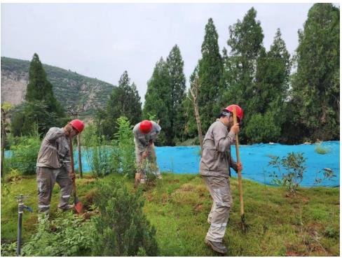 青年突击队积极参加兖州中材河南片区党支部“党旗红,矿山绿”活动,为赶上降雨在烈日之下前后共种植各种树木千余颗,提升了大家?;ど肪车囊馐叮銮苛寺袒?、美化矿区的责任感,充分展现了新时代青年的奉献精神和央企员工爱岗敬业的风采,以实际行动践行了“绿水青山就是金山银山”发展理念,为推动绿矿山色发展作出了贡献。