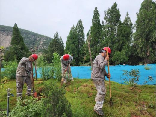 本次活动共覆土千余方,种植树苗百余颗。河南片区党支部坚持把贯彻习近平总书记生态文明思想放在首要位置,认真执行公司高质量转型发展绿色规划,把“绿水青山就是金山银山”理念落实到行动上,对矿区环境进行精准化高质量复绿,给职工创造了良好的工作生活环境,为公司高质量发展增添了更绿的底色。