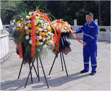惊雷浮雕、陈独秀铜像、新青年碑刻......走过柏林墓道,来到陈独秀先生的墓前,项目执行经理张作钢同志代表公司敬献花圈,带领全体党员和青年同志,怀着无比崇高的敬意,恭敬地向墓碑三鞠躬,用行动表达对先生的敬仰之情。