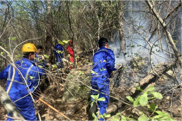 清明将至,当地村民焚香烧纸祭祀,造成飞火引起了火灾。因起火点位于山地深处,远离公路,灭火任务困难,距离水源较远,在项目副经理向孝阳同志和安全副经理张目利同志的带领下,大家纷纷拿起铁锹、钉耙等工具,前往起火点,清理易燃物,铲土浇盖火星子,为下一步工作做好铺垫,终于在大家的努力下,水源送到了山顶,火情被一一扑灭。